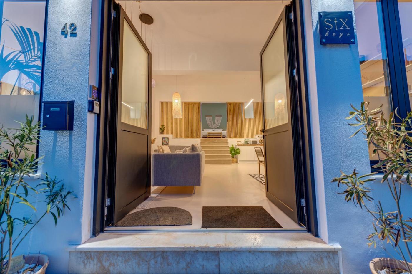 Located in Ermoupoli, 400 metres from Saint Nicholas Church and 1.5 km from Industrial Museum of Ermoupoli, Six keys offers air conditioning. This apartment is 1.4 km from Neorion Shipyards and 400 metres from Miaouli Square. Free WiFi is available throughout the property and Asteria Beach is 600 metres away.
