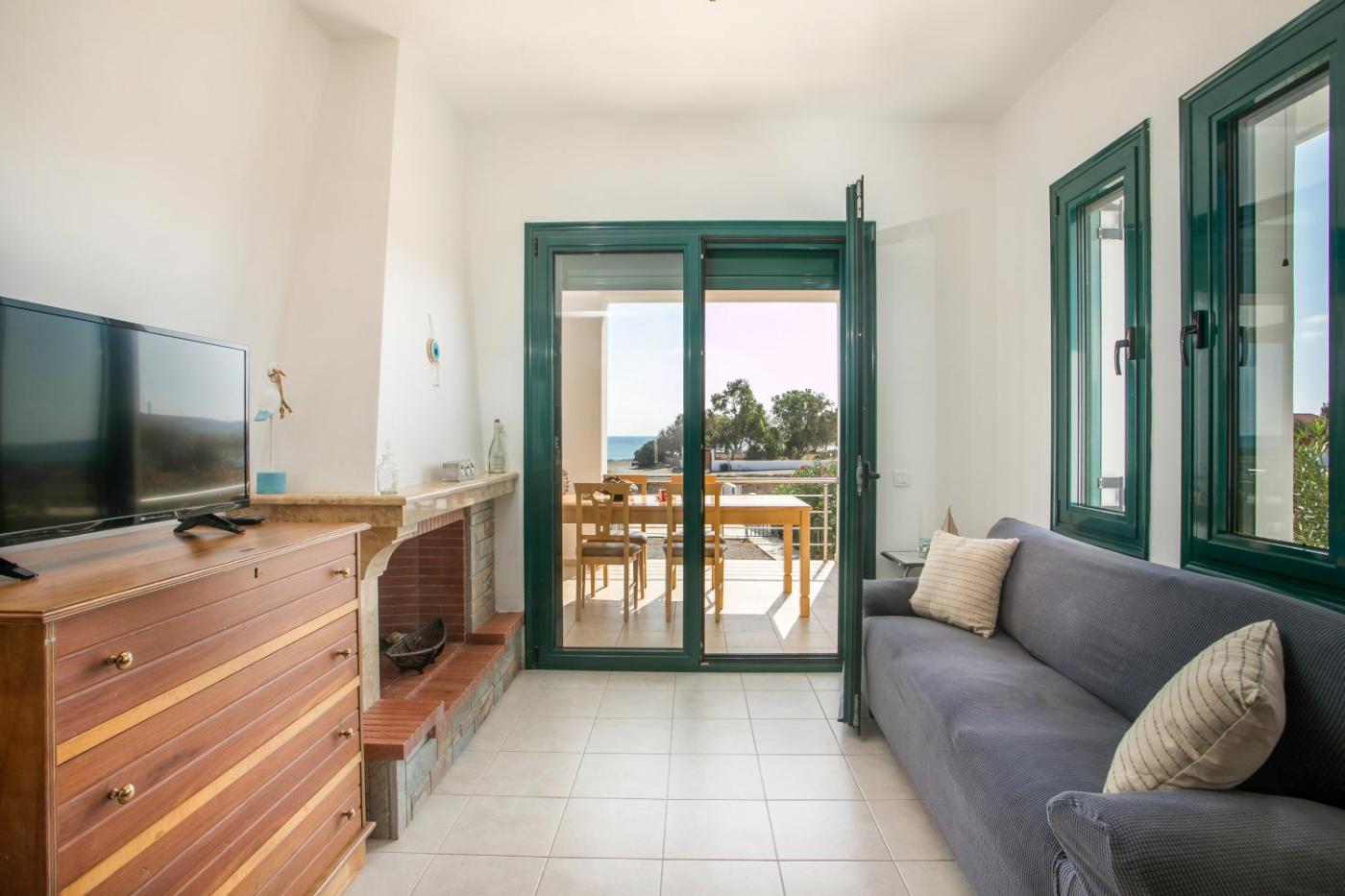 Two-Bedroom Villa. The fireplace is a top feature of this villa. Boasting a private entrance, this air-conditioned villa comes with 1 living room, 2 separate bedrooms and 2 bathrooms with a bath and a shower. Guests will find a stovetop, a refrigerator, kitchenware and an oven in the kitchen. The villa also includes a barbecue. Featuring a terrace with sea views, this villa also features a washing machine and a flat-screen TV. The unit has 3 beds.