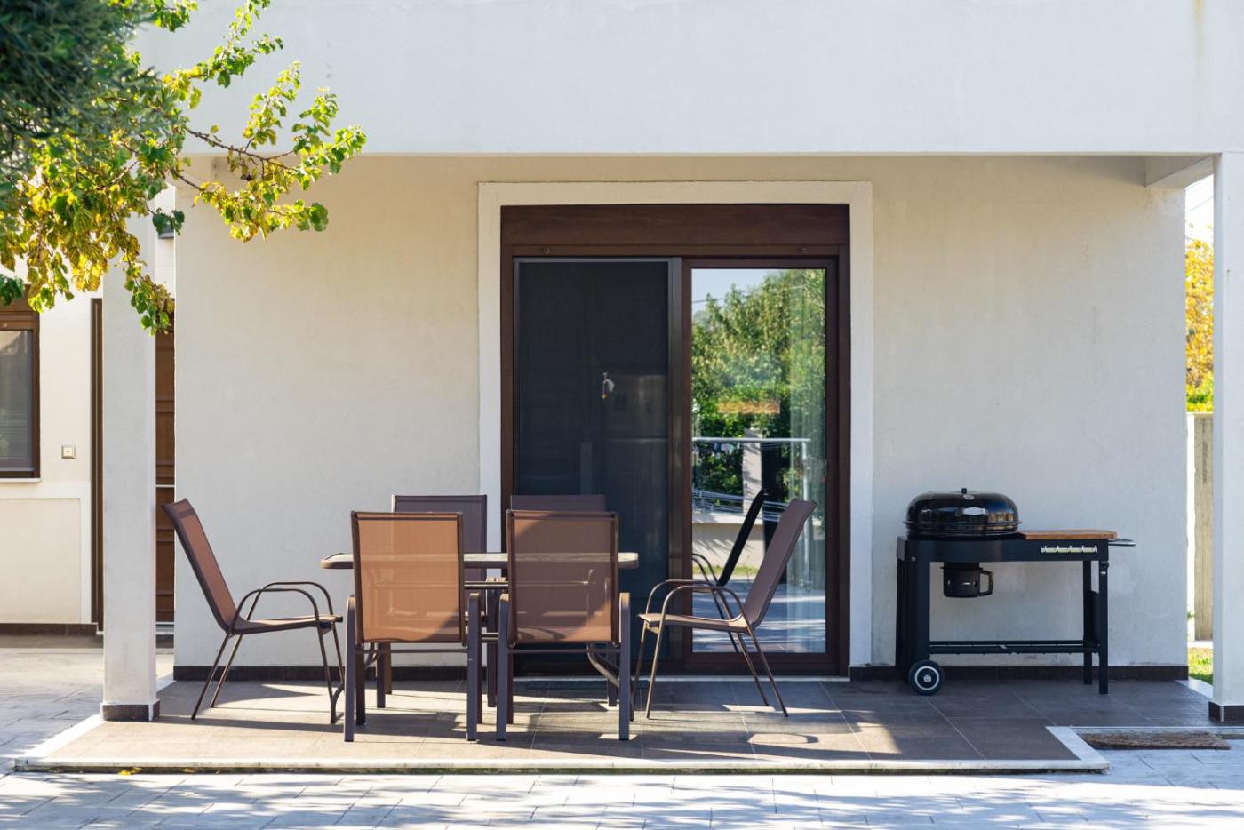 Three-Bedroom Villa. Boasting a private entrance, this air-conditioned villa includes 1 living room, 3 separate bedrooms and 2 bathrooms with a bath and a hairdryer. Guests will find a stovetop, a refrigerator, kitchenware and an oven in the kitchen. The villa also features a barbecue. Featuring a terrace with garden views, this villa also offers a washing machine and a flat-screen TV with streaming services. The unit has 5 beds.