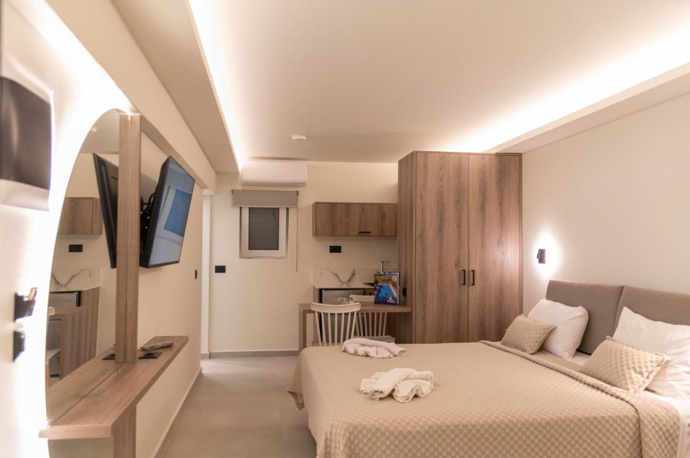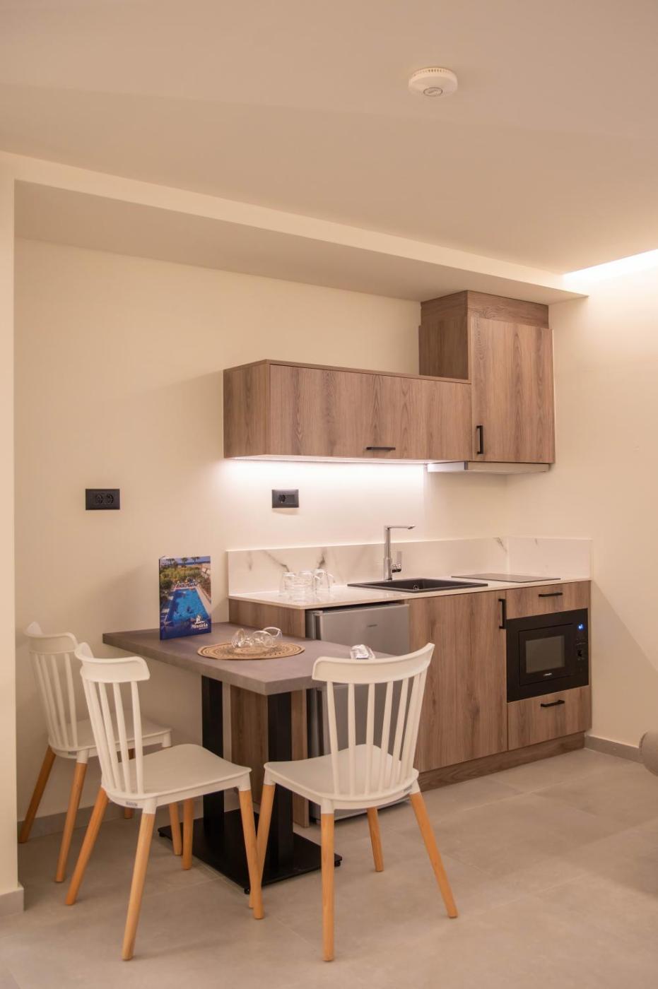 One-Bedroom Apartment. Featuring a separate bedroom, this air-conditioned apartment has a balcony with views over the pool, the garden or the Cretan Sea. It features a kitchenette with fridge, cooking hobs and microwave. A safe, a hairdryer and a flat-screen TV with satellite channels are available. ;
