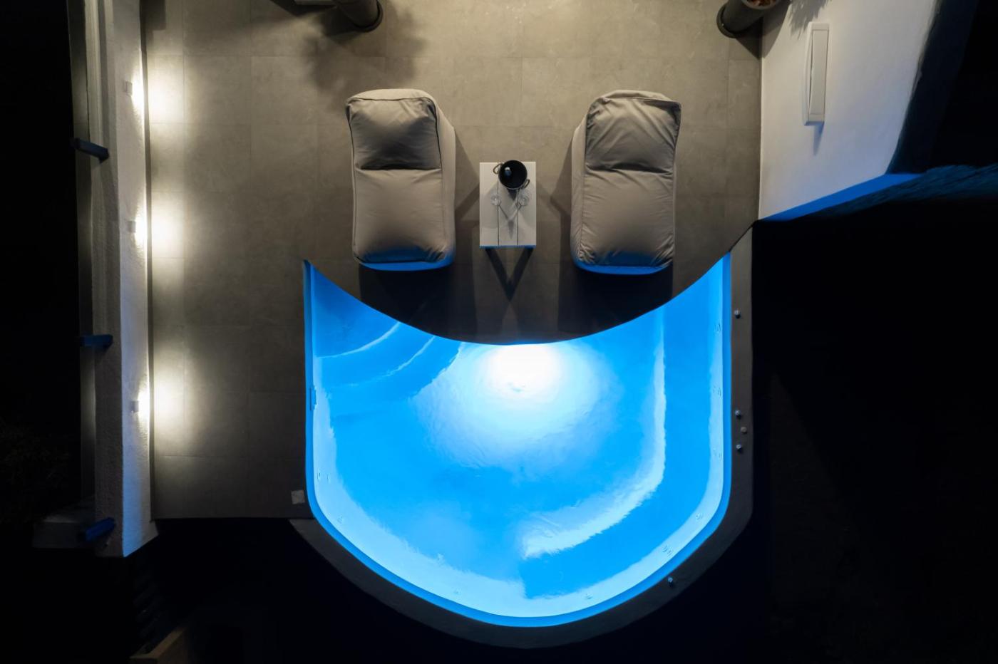 Junior Suite with Private Pool. This suite boasts a private pool, hot tub and spa bath. This spacious suite is comprised of 1 living room, 1 separate bedroom and 1 bathroom with a shower and free toiletries. Guests can make meals in the kitchenette that is fitted with a refrigerator, a microwave and a tea and coffee maker. The air-conditioned suite offers a flat-screen TV with streaming services, a private entrance, soundproof walls, a minibar as well as garden views. The unit offers 2 beds. ;