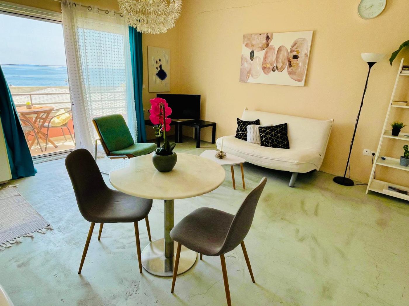 One-Bedroom Apartment. Boasting a private entrance, this air-conditioned apartment features a kitchen, 1 bedroom and 1 bathroom with a shower and a hairdryer. In the well-equipped kitchen, guests will find a stovetop, a refrigerator, kitchenware and an oven. Featuring a terrace with sea views, this apartment also features a washing machine and a flat-screen TV. The unit has 2 beds.